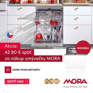 Získaj za nákup novej Extra tichej umývačky riadu MORA späť až 80 €! Akcia platí od 17. 3. 2025 do 31. 10. 2025 alebo do vyčerpania zásob v rámci akcie.