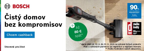 Bosch tyčové vysávače s cashbackom až 80 Eur