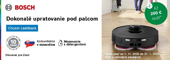 V období od 1. 10. do 30. 11. 2025 prebieha u nás akcia Bosch Cashback Kvalita po generácie na vybrané spotrebiče Bosch.