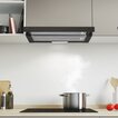 teleskopický odsavač IDEA, 60 cm, energetická trieda B, verzia pre odťah aj recirkuláciu, motor 65W, maximálny výkon odsávania 332 m3/h, 2 úrovne výkonu, mechanické tlačítkové ovládanie, 1x 2 W LED osvetlenie, 2x hliníkový filter, 2x pachový uhlíkový filter, cena vrátane uhlíkového filtra KFC6961 - 2ks, priemer odťahu: 150 mm, redukcia nie je súčasťou balenia, prevedenie: čierne. Rozmery (VxŠxH): 176x600x430 mm