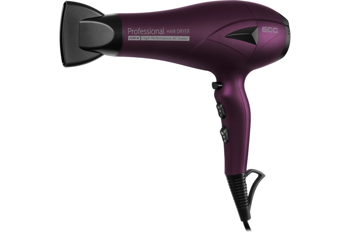 Sušič vlasov ECG VV 3121 Professional vo fialovom vyhotovení dokonale vynikne v každej kúpeľni. S výkonom dosahujúcim hodnotu 2100 W sú rýchle vysušené vlasy samozrejmosťou a vy jednoducho docielite profesionálne výsledky.