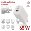 max. výstup 1× USB A: 5 V/3 A - 9 V/3 A - 12 V/3 A - 20 V/3 A (60 W); C1/C2: 5 V/3 A – 9 V/3 A – 12 V/3 A – 15 V/3 A – 20 V/3,25 A (65 W)