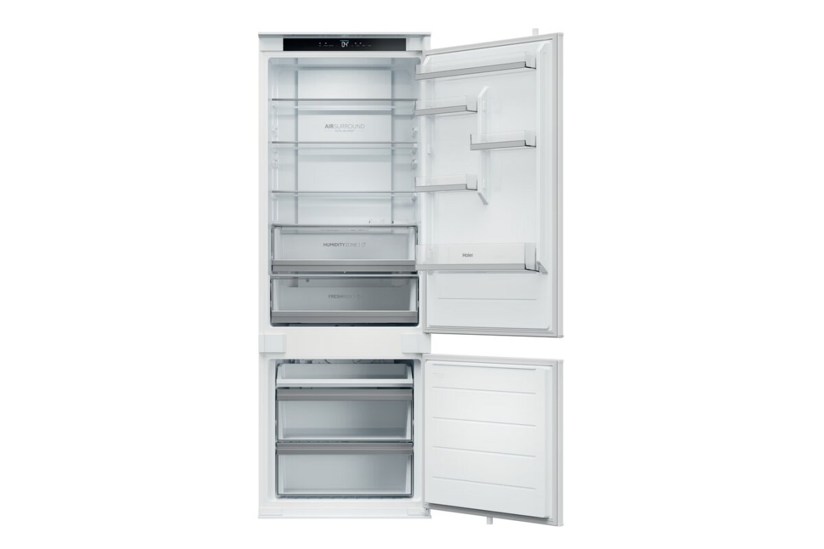 S technológiou Haier Air Surround prúdi vzduch vo vnútri chladničky jemnejším a šetrným spôsobom. Vďaka špeciálnym bočným vývodom tento systém homogénne distribuuje studený vzduch obklopujúci potraviny v celom priestore chladničky, čím sa zabráni priamemu prúdeniu na potraviny bez straty ich hmotnosti a vysušenia potravín. Vďaka tomu dokáže Haier Air Surround zachovať pri potravinách ich chuť, konzistenciu a šťavnatosť až o 99 % aj po 7 dňoch ako pri prvom dni.