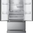 Zadná stena je pokrytá nerezovým panelom, ktorý udržiava stabilnú teplotu, pomáha ju rýchlejšie obnoviť po otvorení dverí a zabezpečuje rovnomerné prúdenie chladného vzduchu. Lesklý kovový povrch vo vnútri zároveň zvyšuje účinnosť chladenia a dodáva chladničke prémiový vzhľad.