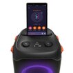 Výkonný párty reproduktor JBL PartyBox 110 v čiernej farbe sa postará o výnimočnú párty či ste u vás doma, na lúke či na záhrade pri bazéne. Zvuk s hlbokými basmi (Bass Boost) a charakteristickou JBL Original Pro Sound kvalitou poplynie do priestoru s RMS výkonom 160 W a celkový zážitok z hudby umocní dynamické LED osvetlenie synchronizované s rytmom hudby. Špecifikom je odolnosť voči striekajúcej vode triedy IPX4, TWS, Bluetooth 5.1, prehrávanie z viacerých zdrojov (Bluetooth, USB, Aux-In) a možnosť ovládania prostredníctvom aplikácie PartyBox. Ak by ste chceli zábavu ešte vygradovať, zariadenie disponuje vstupom pre mikrofón alebo gitaru, aby ste si mohli užiť ten správny karaoke večierok. Integrovaná batéria sa postará až o 12 hodín prísunu hudby (v závislosti od používania).