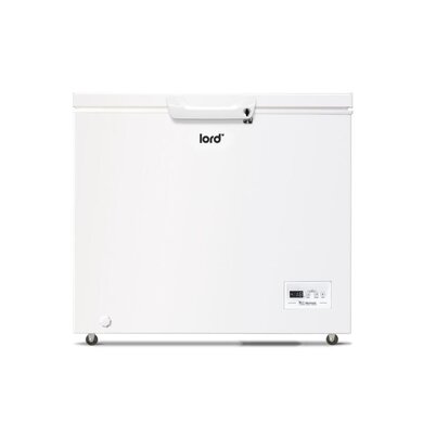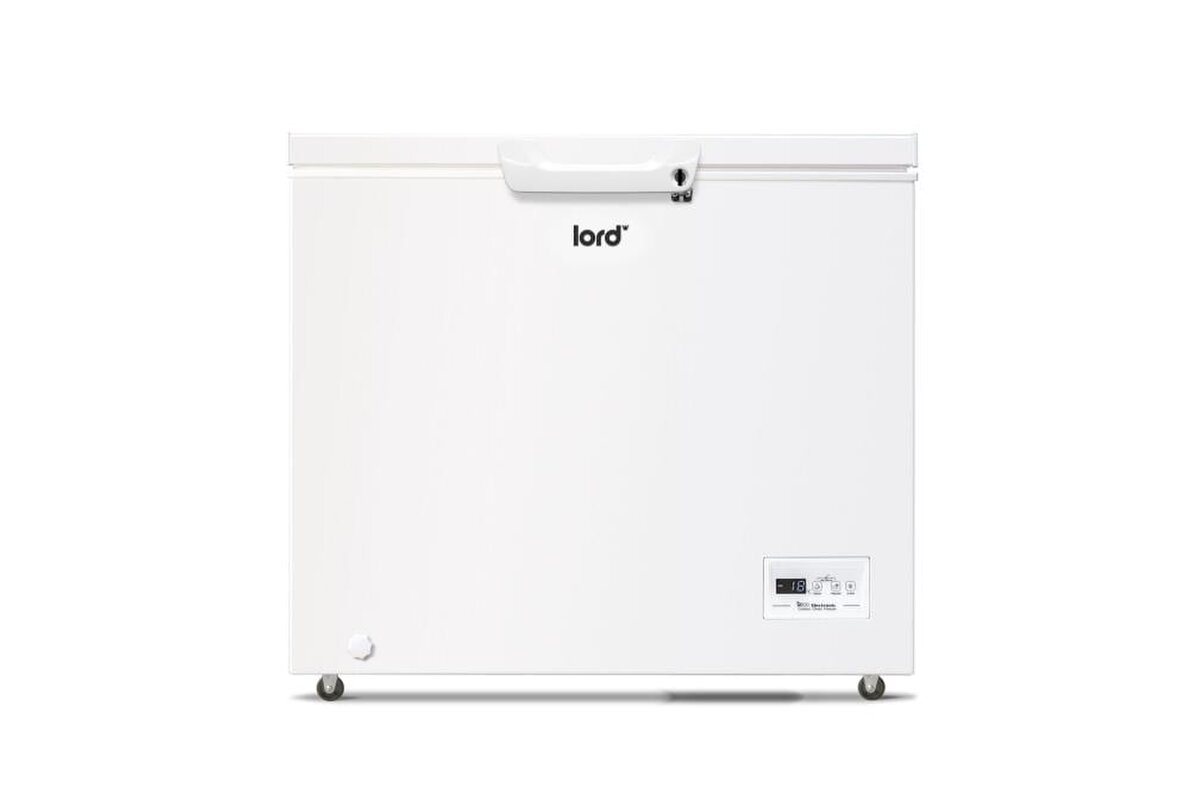 LORD G3 truhlicová mraznička sa začleňuje do voľne stojacich mrazničiek, takže ho možno umiestniť takmer kamkoľvek a to aj tam, kde je až -15 ° C ako je garáž, pivnica, balkón, chata alebo chalupa, kde netemperujete. Kolieska uľahčí presun podľa potreby. Prekvapí vás nielen svojím úžitkovým priestorom a jednoduchým ovládaním, ale hlavne svojou nízkou spotrebou. Radí sa do energetickej triedy E pri ročnej spotrebe 215 kWh. Hlučnosť mrazničky nepresiahne cez 40 dB. V mrazničke tiež nájdete Invertor BLDC kompresor. Pri otvorení ponúkne tento mrazák dostatočný úžitkový objem 246 l., Takže nemusíte mať strach z nedostatku priestoru. Nespornou výhodou je možnosť uskladnenie objemných potravin.Jistě oceníte aj závesný kôš, do ktorého môžete uložiť aj zmrzlinu a ovocie. Aj po stránke výkonu nezaostáva a prekvapí, pretože dokáže zmraziť až 14 kg potravín za 24 hodín a pri výpadku prúdu zostanú potraviny zmrazené ešte po dobu 24 hodín. Mraznička je vybavená funkciou super mrazenie (SuperFrost) pre rýchle zmrazenie. Keď sa na stenách mraziaceho priestoru po dlhšej dobe prevádzky vytvorí vrstva námrazy alebo ľadu ani toho sa báť nemusíte, ľahké odmrazenie a odvod roztopenej vody vpredu Vám to uľahčí. Veko mrazničky je vybavené rúčkou na pohodlné otváranie a zatváranie.