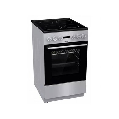 Elektrický sporák C 5245 DS v striebornom prevedení so sklokeramickou platňou a multifunkčnou rúrou energeticky spadá do úspornej triedy A. Materiál použitý na varnú dosku je tepelne odolný, ľahko umývateľný a vydrží záťaž až 100 kg as ukazovateľom zvyškového tepla na doske ste chránení pred nepríjemným inými nehodami. Výkonná multifunkčná rúra s objemom 70 l má celkom osem rôznych programov s presnou reguláciou teploty v rozmedzí 50-275 °C. Medzi funkciami nájdete horné a dolné výhrevné teleso, kruhové teleso s ventilátorom či program Pizza. Teplovzdušné pečenie umožňuje piecť vo viacerých vrstvách naraz aj rôznych druhov pokrmov, kedy pri pečení nedochádza k vzájomnému ovplyvneniu odlišných chutí a vôní napríklad mäso s pečivom. Nové bezpečné závesy dvierok zaručujú bez Vašej asistencie veľmi tiché a šetrné zatváranie dvierok trúby. Celý priestor rúry je osvetlený pre väčšiu prehľadnosť o stave pokrmu. V spodnej časti sporáka je praktický úložný priestor, do ktorého ľahko uložíte príslušenstvo v podobe roštu a MAXI pekáča XXL s objemom až 8 l.