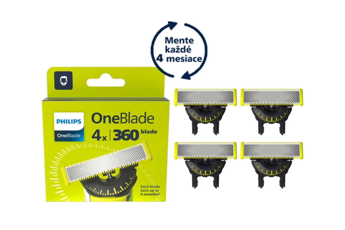 Inovatívna 360 čepeľ sa ohýba do každého smeru a prispôsobí sa črtám vašej tváre. Dizajn umožňuje nepretržitú kontrolu a kontakt s pokožkou. Jednoduché zastrihávanie a holenie ťažko dostupných miest pár ťahmi a so skvelým pocitom komfortu. Čepele sú kompatibilné so všetkými modelmi OneBlade.