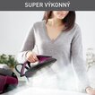 Nepretržitý výstup pary 130 g/min a tlak čerpadla 7 bar pre rýchlejšie žehlenie a silný výkon parného rázu 500 g/min, ktorý vyhladí aj tie najnepoddajnejšie záhyby.