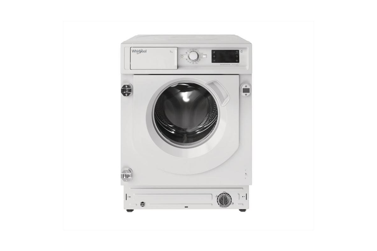 Vstavaná spredu plnená práčka Whirlpool BI WMWG 71483E EU N je v energetickej triede D s diplejom pre zobrazenie funkcií, teploty a času.