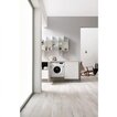 Inštalácia práčky je do medzery medzi skrinky, závesy nábytkových dverí sú priamo na prednej stene práčky.